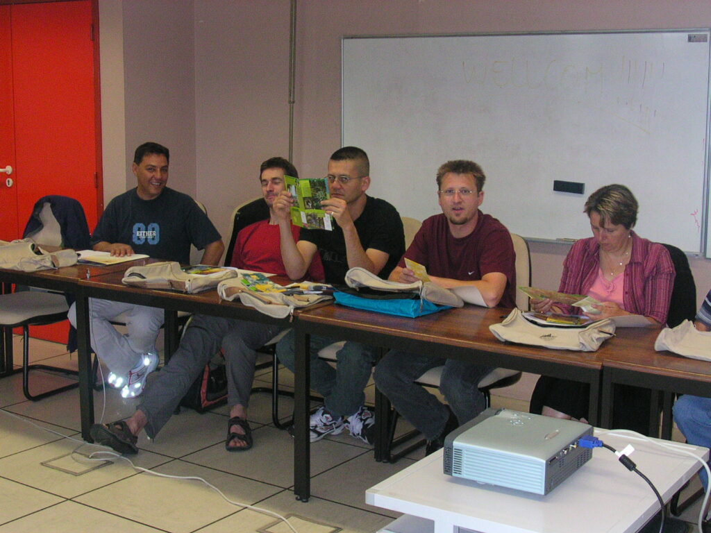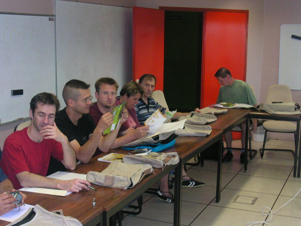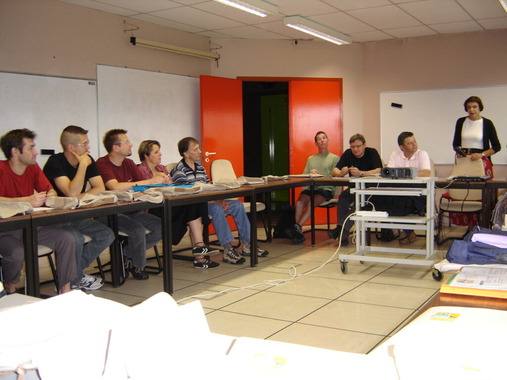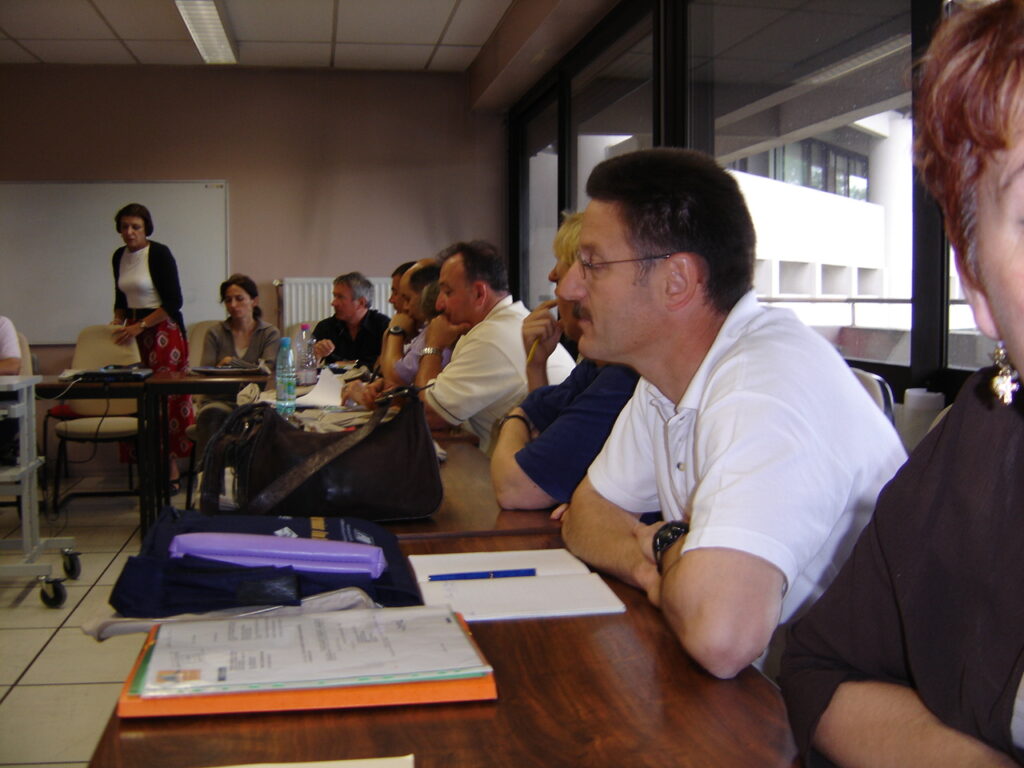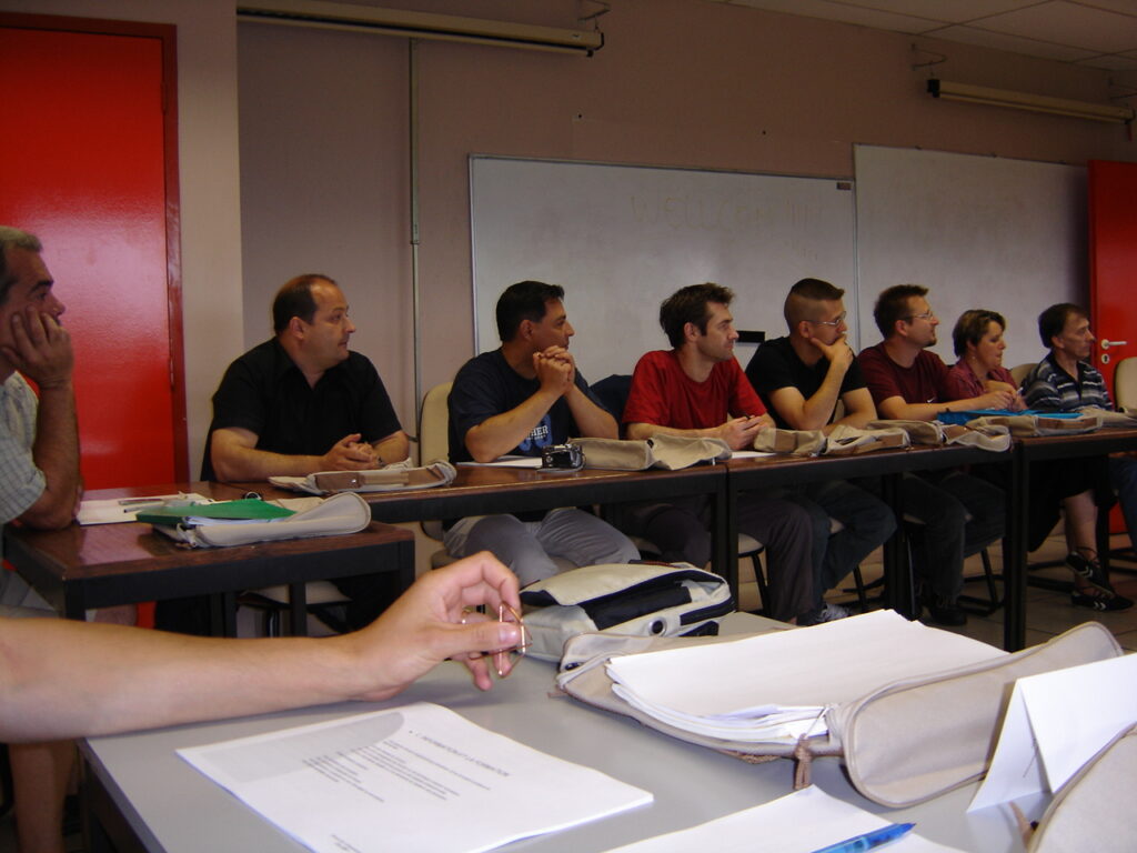 Accueil des stagiaires par Mme Llado Rosy, responsable de la formation continue à l’université de Pau. Présentation des techniques de réalisation de lames minces de sol par Yannick BENARD, INRA de Rennes : techniques de prélèvement sur parcelles de sol, fabrication d’une lame mince de sol : déshydratation à l’air pour les limons ou par échange eau-acétone pour les argiles gonflantes, imprégnation lente ou immersion de l’échantillon dans le mélange (résine + acétone + pigment fluorescent + catalyseur), sciage, polissage, analyse d’images : étude de la porosité des sols cultivés, origine mécanique ou biologique.