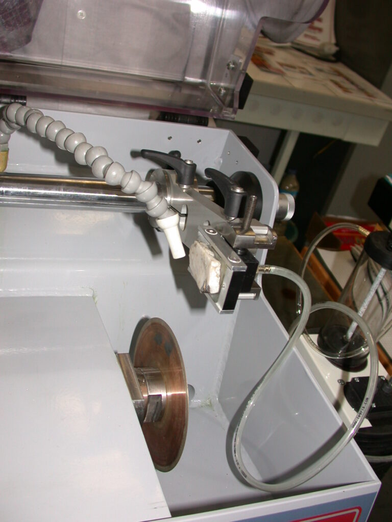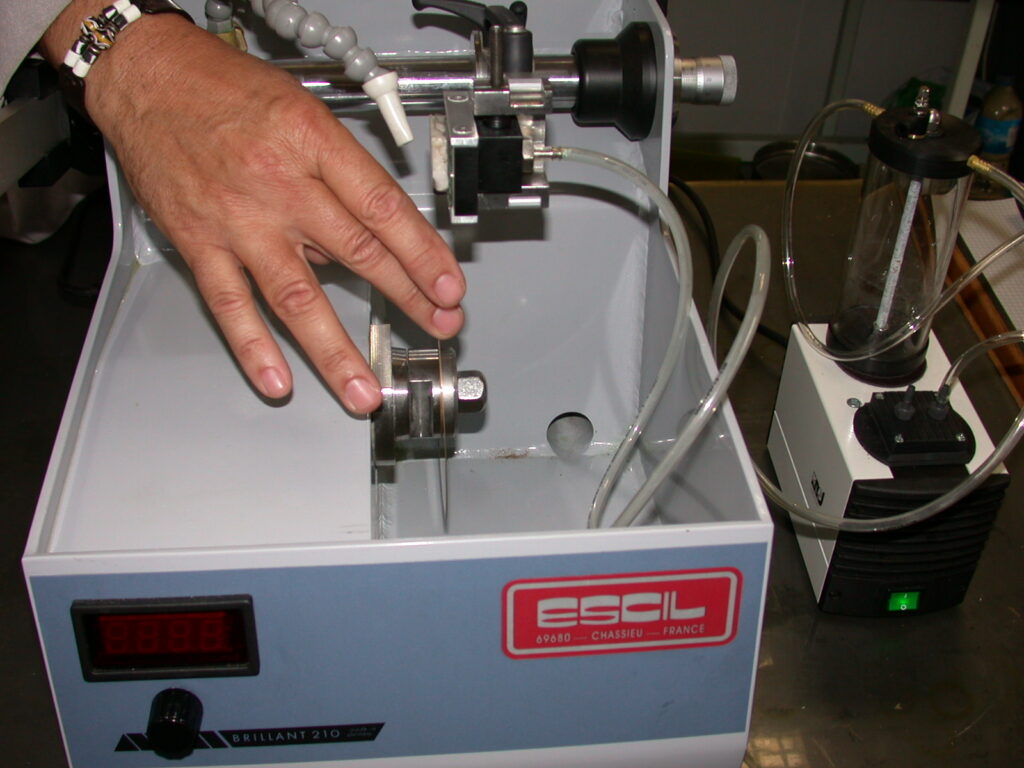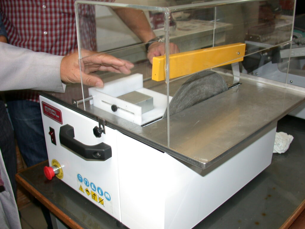 -Présentation du matériel de préparation de lames minces ESCIL(rodeuse, scie d’arasement, débiteuse de table, dispositif d’imprégnation sous vide) par Monsieur WARGNIER.