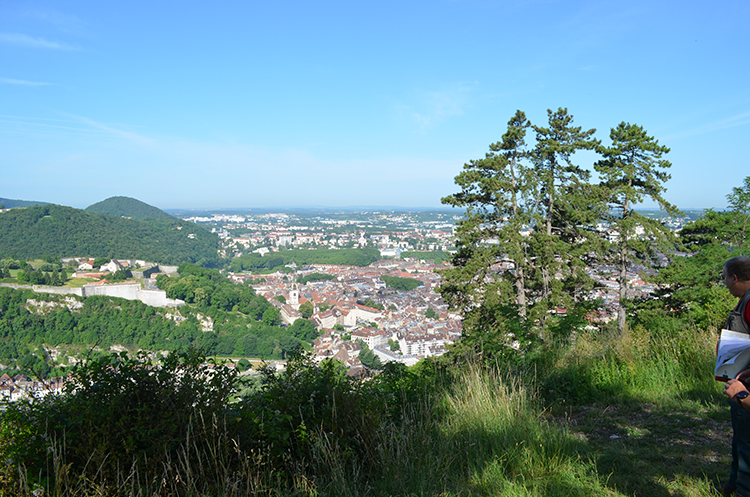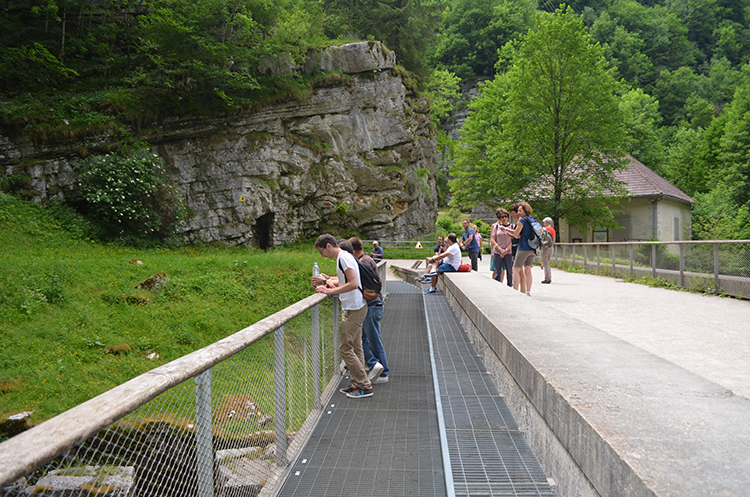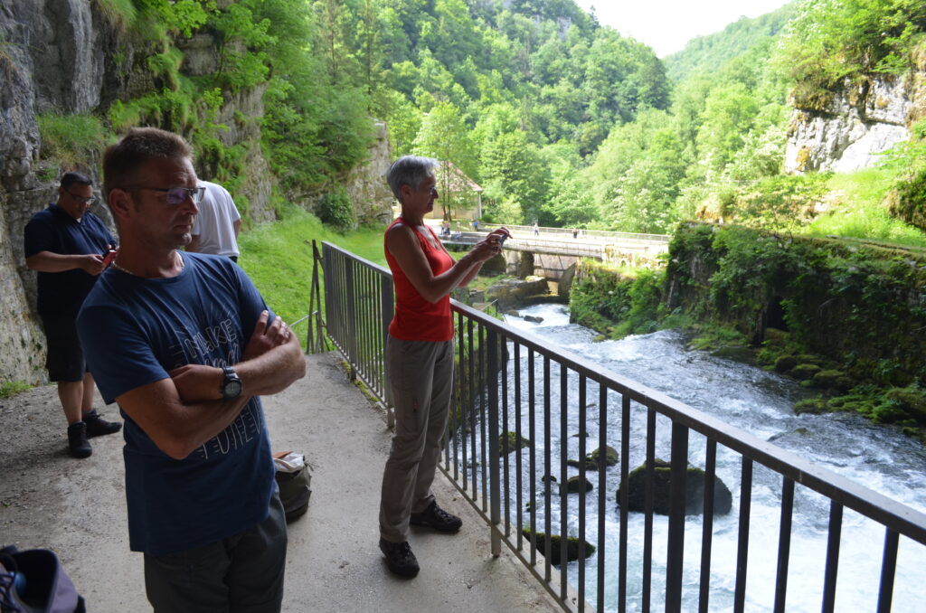 Le lendemain, excursion géologique (1) sur plusieurs sites remarquables (2) autour de Besançon, échantillonnage dans le Jurassique (3) à la frontière Suisse, découverte de la source résurgente de la Loue et de ses gorges.