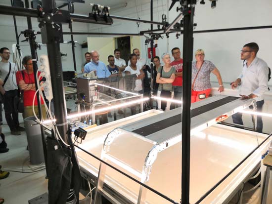 Visite du laboratoire de préparation de lames minces par Christelle GRUBER, lithopréparatice et organisatrice de ce colloque.
