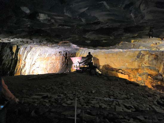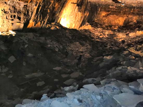 Excursion géologique sur le site de la carrière souterraine ardoisière de la mine bleue. Site unique en Europe située sur la commune de Noyant la Gravoyère